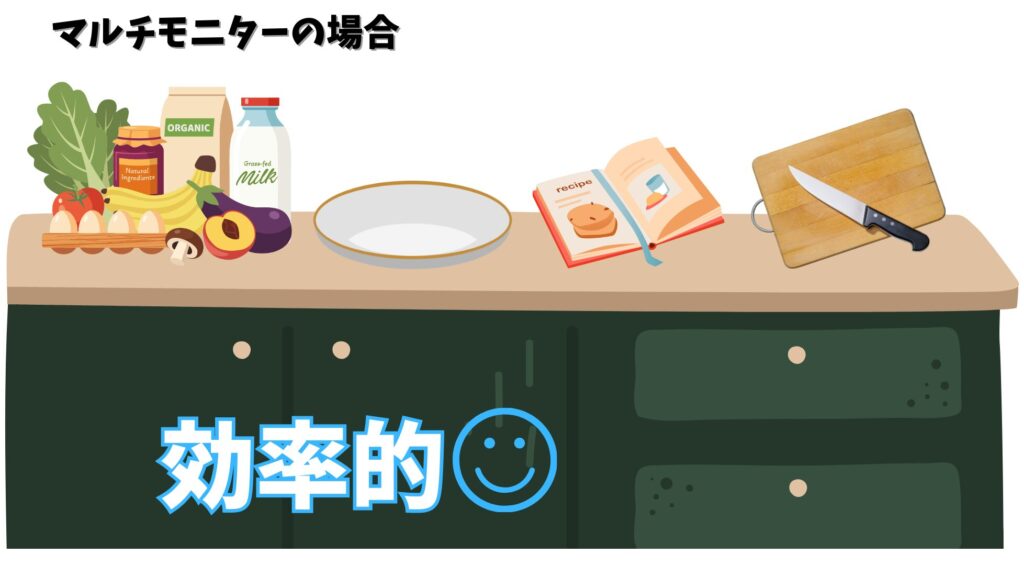 一方、マルチモニターは、広々としたキッチンにいるようなものです。