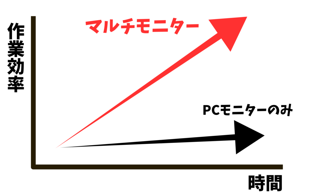 ワンモニターに比べ、マルチモニターでは作業効率が42%上がったという調査結果も出ています。