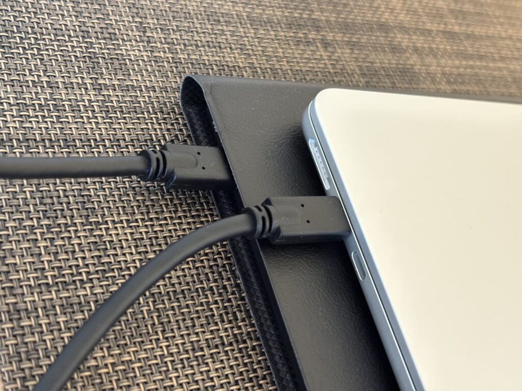 つまり、Type Cケーブルさえ持っていれば、どこでも充電の必要なく使えます。最高。