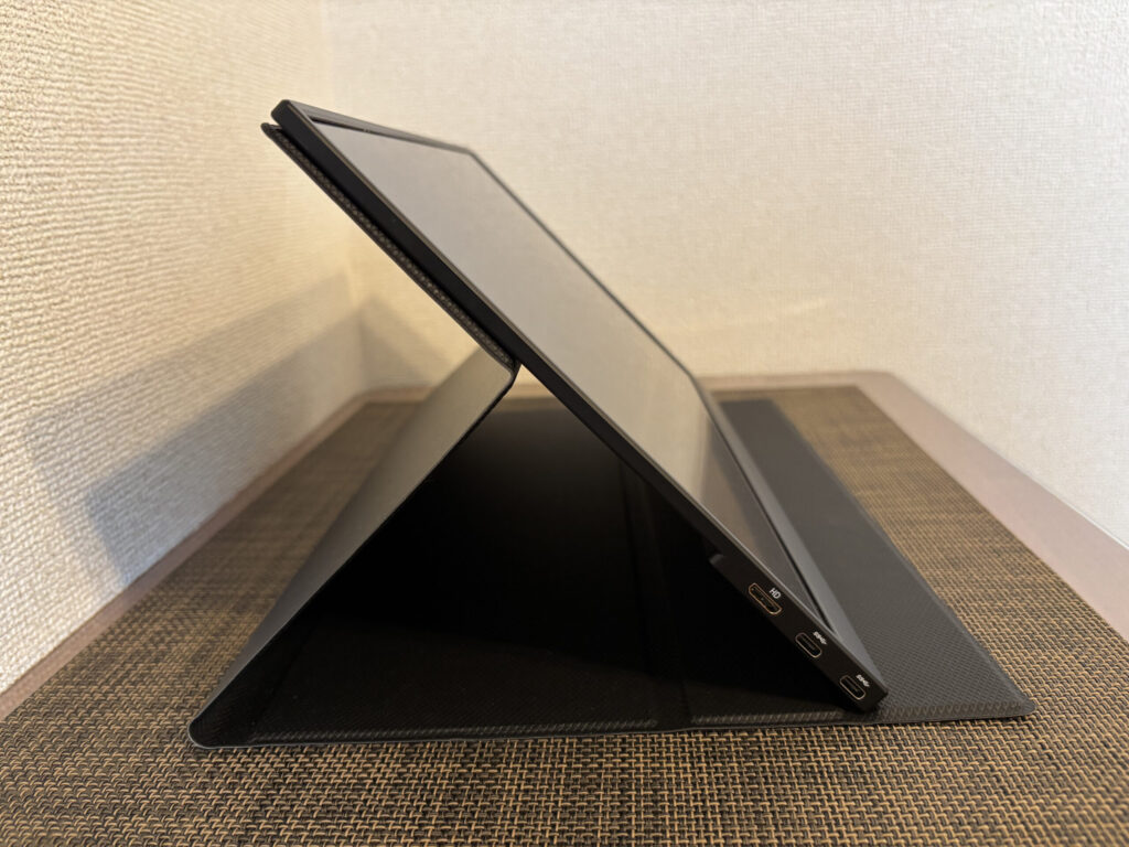 2段階で角度調整が可能。スタンドを余計に買う必要がない。